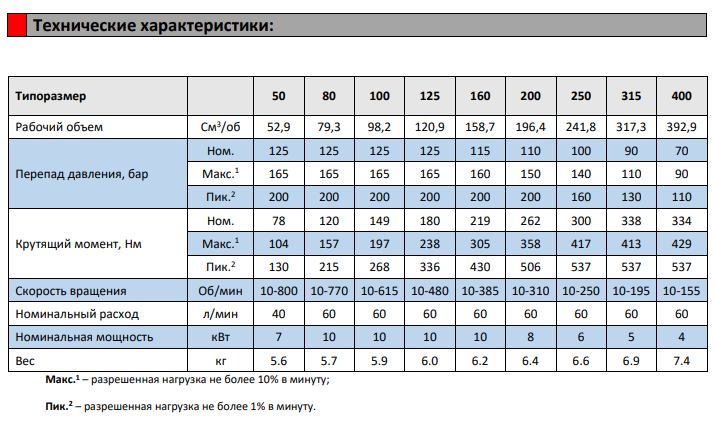 вращение зубчатый ротор, который начинает совершать планетарное движение, обкатываясь по роликам. Героторные гидромоторы отличаются высокой энергоемкостью, возможностью работы при давлениях до 35 МПа. Рабочий объем таких машин достигает 1250 см³, а развиваемый момент - до 3500 Н∙м.