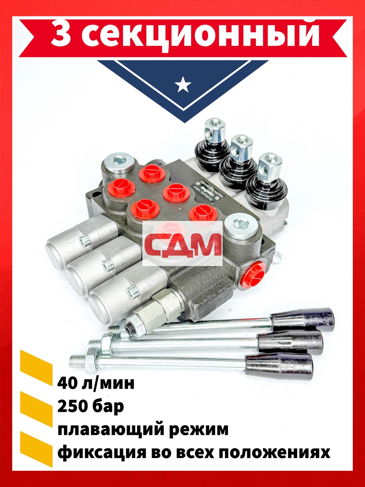 Гидрораспределитель 03 Р 40 К15K15К15 GKZ1 (3 секции, РТN - 1/2; АВ - 3/8) +3 плавающий с фиксацией КИТАЙ