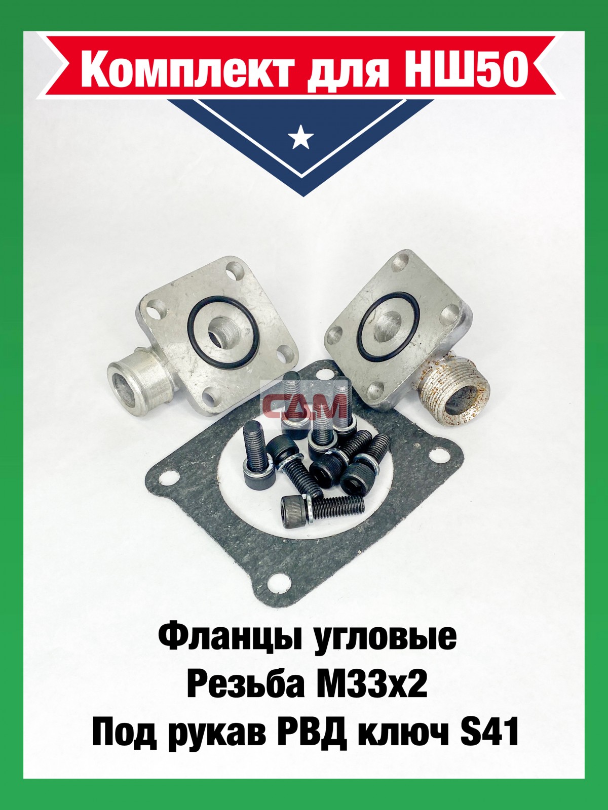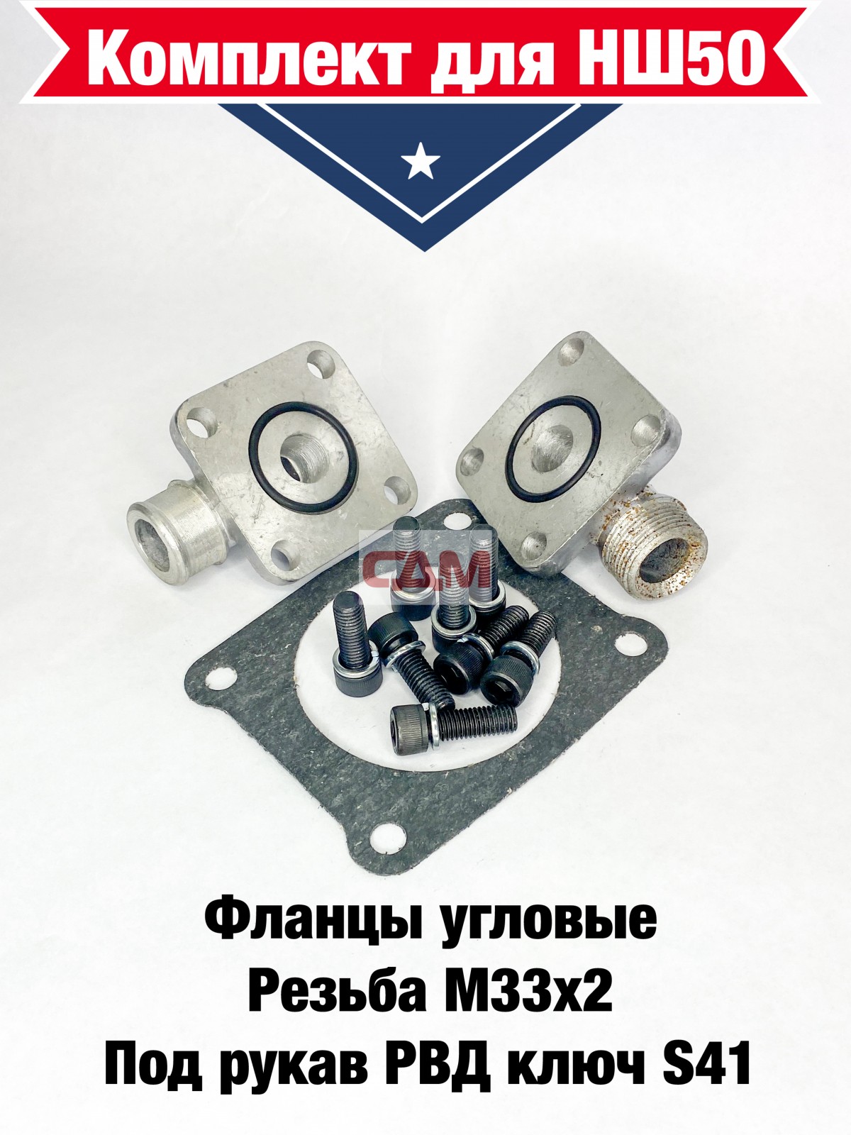Комплект присоединительный насос НШ-50 (фланцы угловые М33х2 ключ S41, прокладка, кольца резиновые, к-т крепежа)