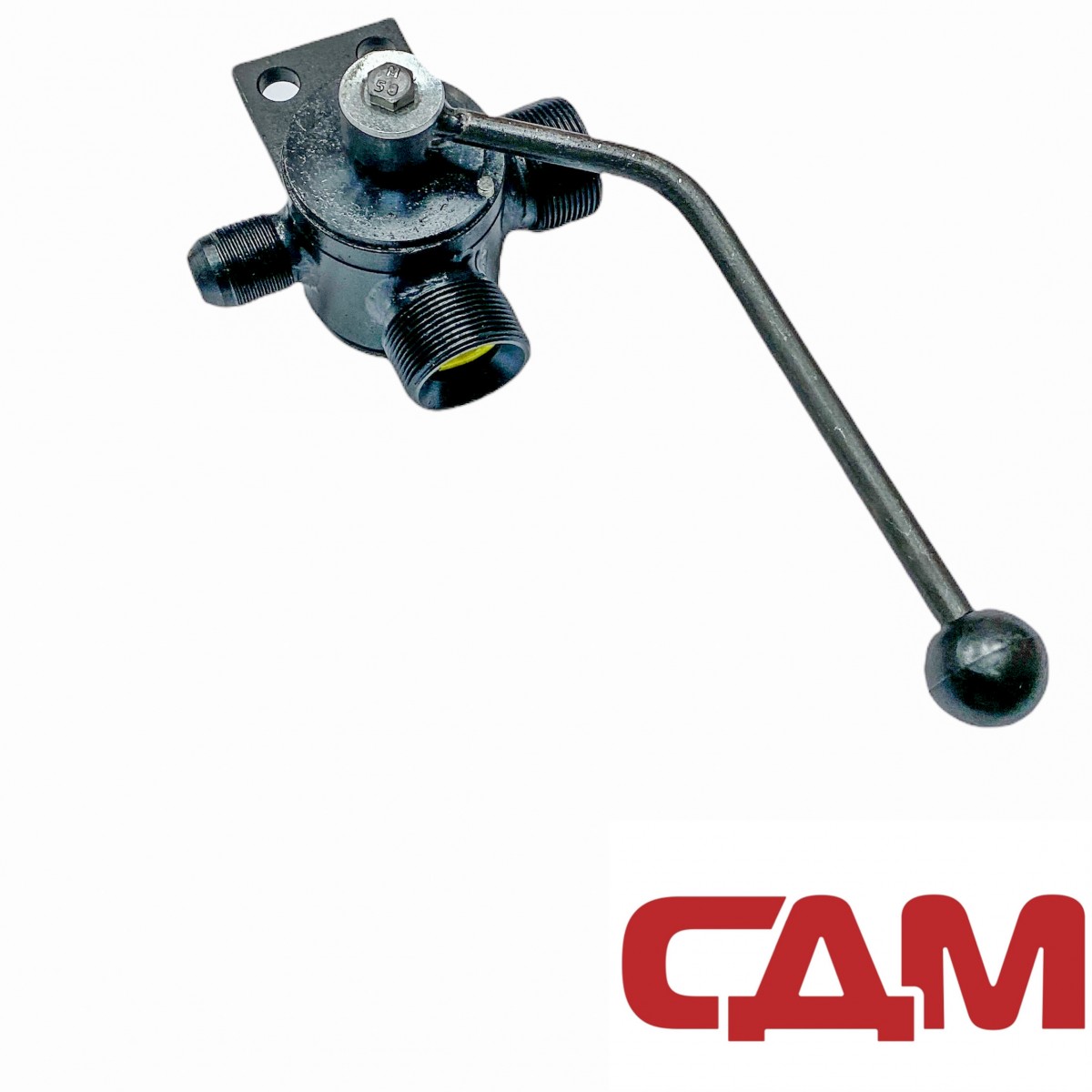 Кран двухходовой (двухпозиционный кран) переключения потока рабочей жидкости установлен на опорной раме крана и предназначен для переключения потока рабочей жидкости от насоса к нижнему гидрораспределителю для управления гидроцилиндрами выдвижения выносных опор и вывешивания крана, либо к исполнительным механизмам, расположенным на поворотной платформе крана.