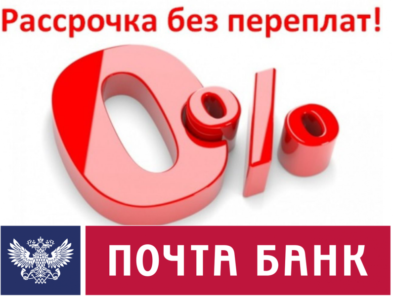 Рассрочка подкреплена договором с банком. Генеральный партнер акции ПАО ПОЧТА БАНК, Лицензия ЦБ РФ на осуществление банковских операций № 650 от 25.03.2016.