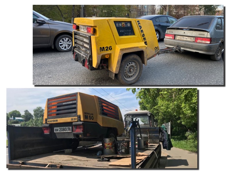 Компрессоры KAESER MobilAIR на дорогах Казани! Вы видите две модели М26 - снят с производства и заменен на модель М27 и бестселлер М50.
